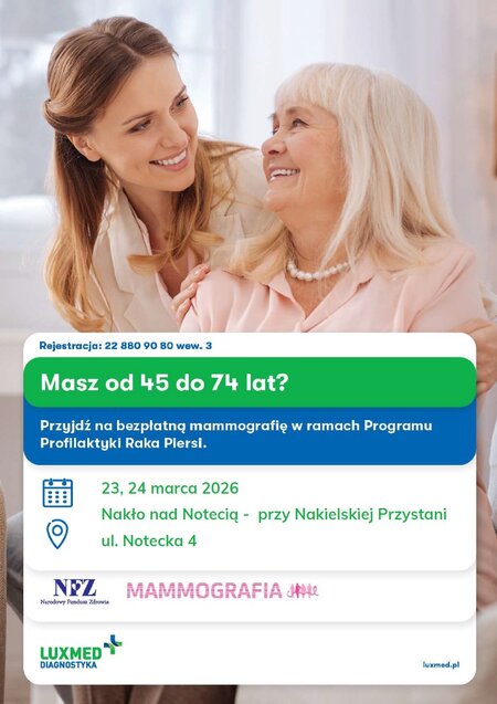LUX MED Diagnostyka zaprasza na bezpłatne badania mammograficzne w technologii cyfrowej w ramach Programu Profilaktyki Raka Piersi finansowanego przez NFZ. W 2026 roku po raz pierwszy w badaniu będą mogły uczestniczyć Panie, które urodziły się w 1981 roku.