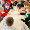 Nie zabrakło również „gimnastyki języka”, do której wykorzystano wiatraczek, pióra i książki. Dzieci ćwiczyły wyraźną wymowę poprzez powtarzanie trudniejszych słów i zabawnych zdań. Najwięcej radości sprawiły im łamańce językowe. Wspólnie próbowały zmierzyć się z takimi zdaniami jak: „Czesał czyżyk czarny koczek”, „Szedł Sasza suchą szosą”, czy „Jerzy nie wierzy, że na wieży leży gniazdo nietoperzy”.