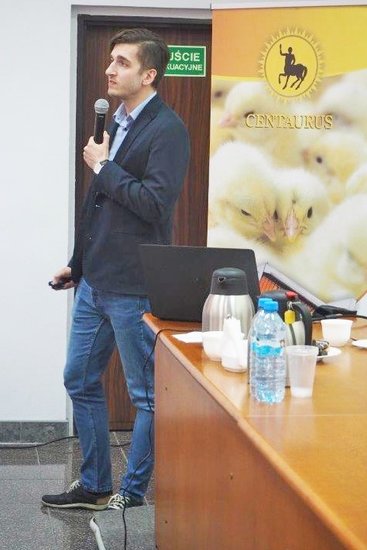 Sebastian Janiszewski zaprezentował program kontroli kokcydiozy na fermach kurcząt brojlerów, który jest skutecznym narzędziem w walce z kokcydiozą u drobiu. Badanie ptaków na kokcydiozę powinno się odbyć w 18-42 dniu (optymalnie 26-32). Wymiernymi korzyściami zastosowania programu kontroli są: obiektywna wiedza o poziomie zagrożenia, śledzenie trendów i dynamiki rozwoju pasożytów, prawidłowe i wczesne projektowanie rotacji kokcydiostatyków oraz skuteczne projektowanie programów bezinwazyjnych. Kolejnym tematem przedstawionym przez Sebastiana Janiszewskiego była praca naukowa pn. „Wpływ zastosowania papieru paszowego o różnej barwie na wskaźniki odchowu kurcząt brojlerów do 7. dnia życia”. W podsumowaniu, autorzy stwierdzili, że doświadczenia producentów kurcząt brojlerów wskazują na korzystny wpływ zastosowania papieru paszowego na wyniki odchowu kurcząt. Obserwowano pewne tendencje do lepszych rezultatów gdy zastosowano papier zielony. Zatem zasadnym wydaje się, iż temat ten powienien być dalej podejmowany, a badania powtórzone z uwzględnieniem, np. obsady kurcząt, różnego genotypu kur, czy też masy początkowej piskląt.