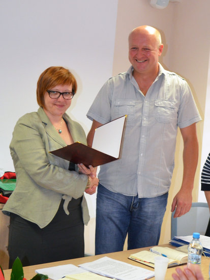 Ustępujący sołtys przekazał pani Michałowi tablicę, która zawiśnie na jego domu z napisem „sołtys”. A Grzegorz Jankowski w podziękowaniu za pełnienie funkcji od Renaty Wrzesz -przedstawiciela urzędu otrzymał bukiet kwiatów i list okolicznościowy od burmistrza Napierały.