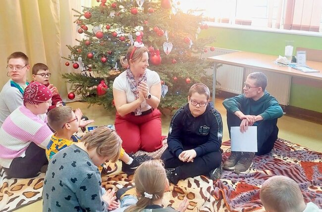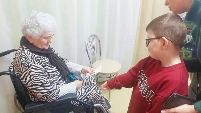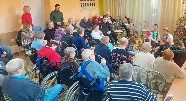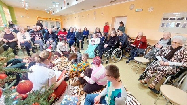 Mali goście obdarowali naszych Seniorów własnoręcznie przygotowanymi kartkami, recytowali piękne wiersze, a także wspólnie czytaliśmy na głos opowieść o choince. Spotkanie zwieńczyło wspólne śpiewanie kolęd, które wypełniło dom ciepłem i wzruszeniem.