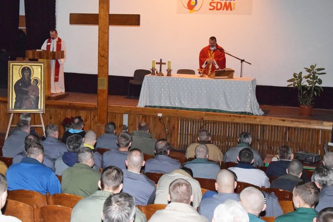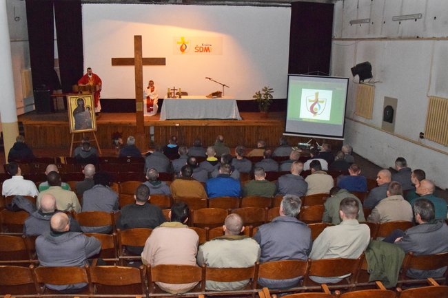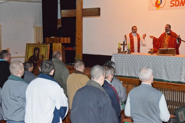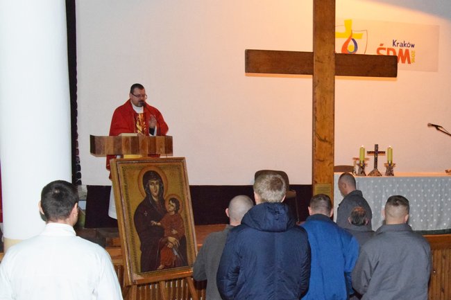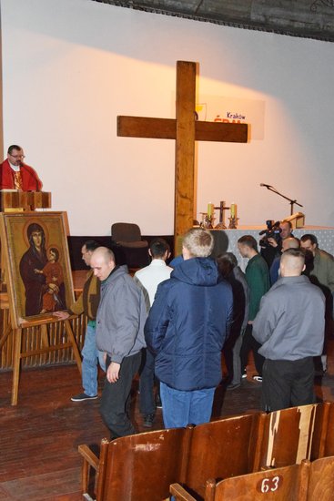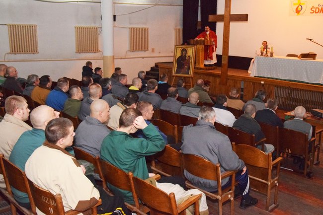 W uroczystej mszy świętej połączonej z adoracją krzyża i ikony wzięli dzisiaj udział # więźniowie Zakładu Karnego w Potulicach.