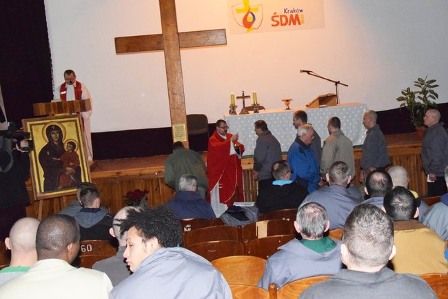 18 stycznia 2016 r. dotarły także do Zakładu Karnego w Potulicach. W uroczystej mszy św., towarzyszącej adoracji krzyża i ikony, koncelebrowanej przez ks. Dariusza Białkowskiego koordynatora Światowych Dni Młodzieży w Diecezji Bydgoskiej oraz ks. Ryszarda Czajkę kapelana Zakładu Karnego w Potulicach, wzięło udział kilkudziesięciu osadzonych. Ideą przyświecającą jest ukazanie krzyża nie tylko w przestrzeni sakralnej, ale także w szkołach, szpitalach oraz zakładach karnych. Przy Krzyżu i Ikonie Matki Bożej modliły się już miliony ludzi w różnych językach.