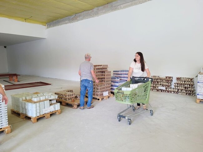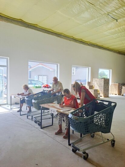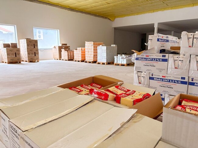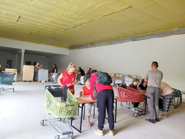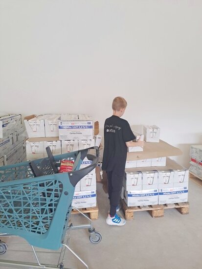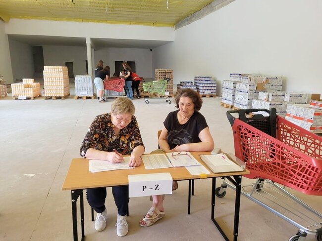 - marketowi Netto, który udostępnił widlaka do rozładunku tira z żywnością oraz kosze, w których potrzebujący odbierali produkty.