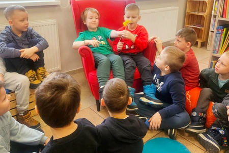 We wtorek, 24 lutego grupa #„Skrzatów” odwiedziła Bibliotekę Publiczną w Ślesinie, gdzie uczestniczyła w literackich zajęciach z okazji Dnia Języka Ojczystego. Spotkanie było nie tylko okazją do poznania tajników polszczyzny, ale także do wspólnej zabawy i ćwiczeń językowych.