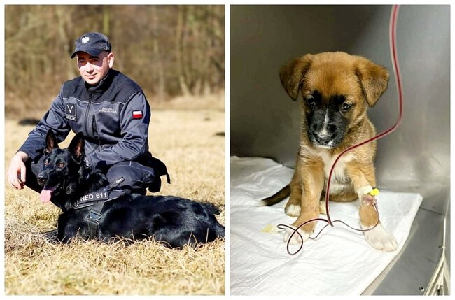 Czworonożny funkcjonariusz został zakwalifikowany jako dawca i oddał krew, dając szanse na walkę o życie młodego psa. Zabiegł przebiegł prawidłowo jednak rokowania wciąż pozostają niepewne, a stan szczeniaka jest monitorowany przez lekarzy weterynarii.