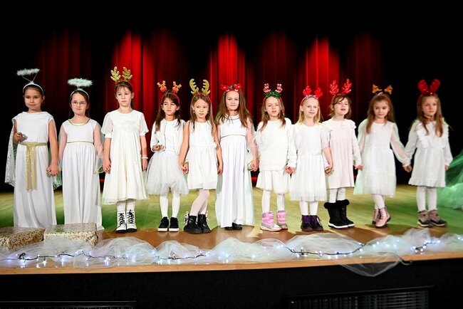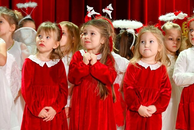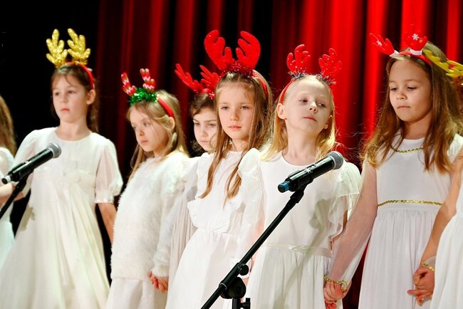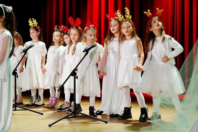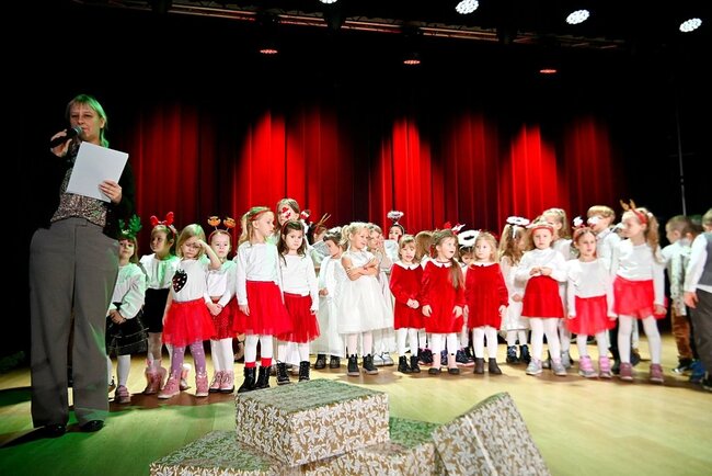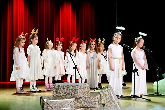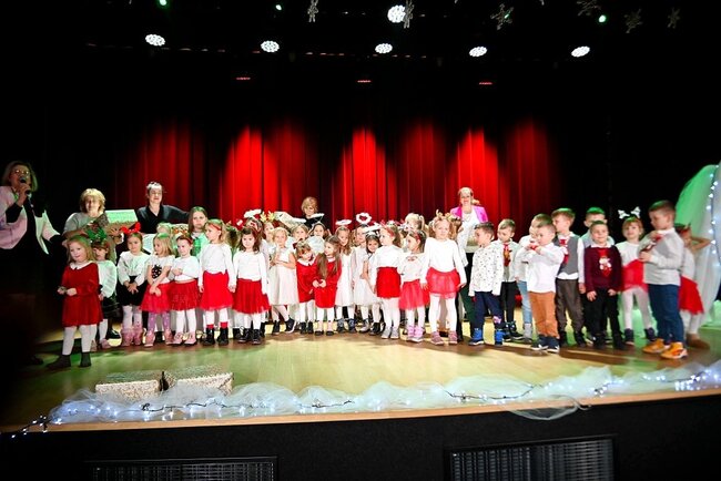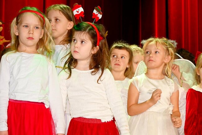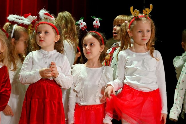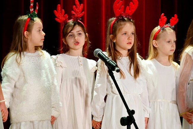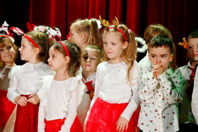 Dzieci występujące na scenie z ogromnym zaangażowaniem zaprezentowały krótkie formy artystyczne inspirowane tematyką Świąt Bożego Narodzenia Na scenie zaprezentowały się grupy „Zajączki” z Przedszkola „Bajkowa Łąka”, „Motylki” i „Biedronki” z Niepublicznego Przedszkola „Wesoła Piątka” oraz dzieci z Niepublicznego Przedszkola „Słoneczko”. Każdy występ był inny, ale wszystkie łączyła radość, dziecięca szczerość i świąteczny nastrój.