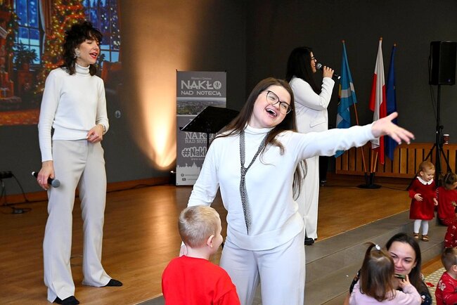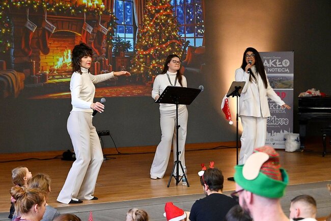 Na scenie wystąpiło wyjątkowe trio: Marta Trudzińska, Dominika Balewska oraz Karolina Lyndo. Trzy głosy, kolędy i pastorałki oraz niezwykle ciepła oprawa sprawiły, że wszyscy bardzo szybko dali się porwać wspólnemu śpiewaniu, kołysaniu i przeżywaniu muzyki całym ciałem. W wydarzeniu licznie uczestniczyły całe rodziny – dzieci, rodzice, dziadkowie i wszyscy ci, którzy chcieli poczuć prawdziwego ducha świąt.