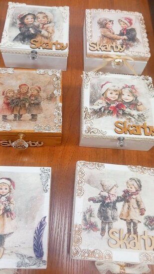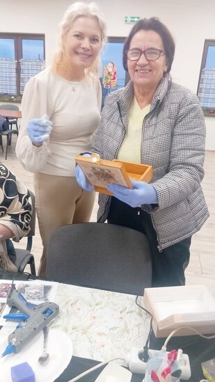 Podczas zajęć seniorki tworzyły skrzyneczki na skarby, wykorzystując motyw dzieci w zimowym klimacie. Tematyka prac oczywiście nawiązywała do zbliżających się Dni Babci i Dziadka, przywołując miłe skojarzenia, wspomnienia oraz rodzinne emocje.