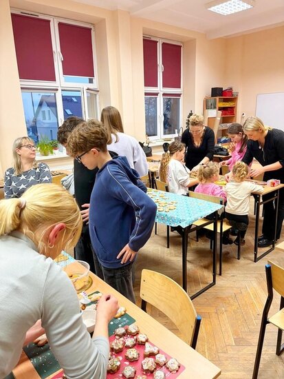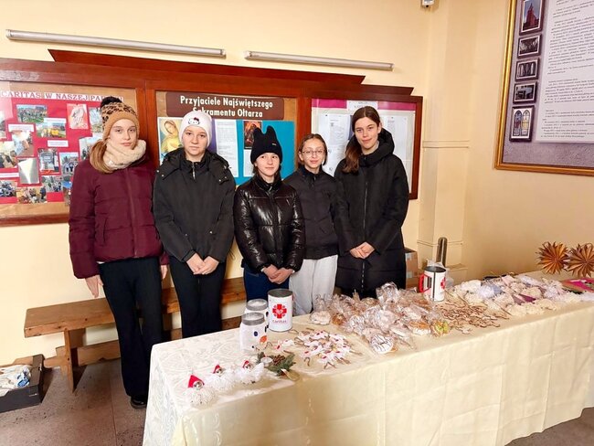 W czasie Adwentu Szkolne Koło Caritas zorganizowało również kiermasz świąteczny, który odbył się w parafii w III Niedzielę Adwentu – 14 grudnia. Na stoiskach znalazły się piękne ozdoby świąteczne wykonane samodzielnie przez dzieci podczas spotkań formacyjnych, a także pyszne pierniki, przygotowane przez rodziców i wspólnie z dziećmi dekorowane. Radość tworzenia i dzielenia się była widoczna na każdym kroku. Akcja kiermaszowa będzie kontynuowana także w szkole w ostatnim tygodniu przed przerwą świąteczną.
