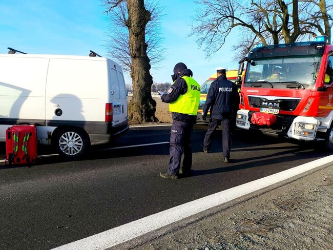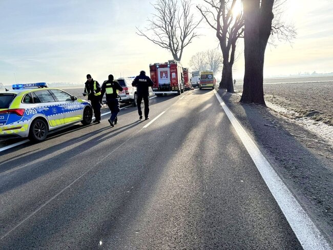 Na miejscu trwa akcja ratunkowa. Jednocześnie policjanci w związku z obrażeniami mężczyzny wykonują czynności procesowe. Na miejsce wezwany został LPR.
