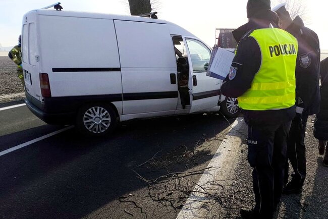 W pojazd z rębakiem znajdujący się na jezdni uderzyła 50-letnia kierująca samochodem Citroen.