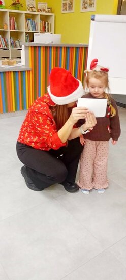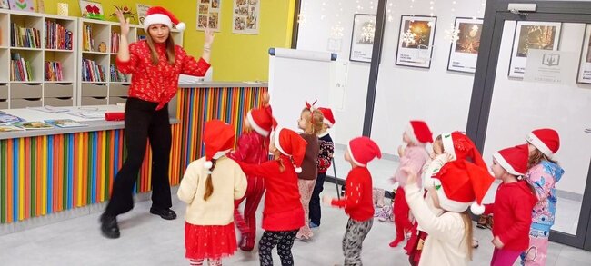 Biedronki i Żabki z Wesołej Piątki świetnie się z Panią Anią bawiły. Była zimowa bajeczka, mikołajkowe puzzle, sprawdzaliśmy jakie prezenty Mikołaj ma w worku. Dzieci ćwiczyły z Mikołajem, kolorowały, brały udział w zimowych kalamburach, a na koniec bawiły się podczas świątecznych piosenek. Oczywiście pod małą choineczką przedszkolaki znalazły słodki poczęstunek. To były radosne spotkania.