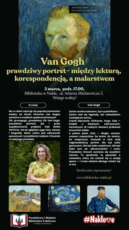 Dzisiaj odbędzie spotkanie# z Moniką Szomko - Van Gogh: prawdziwy portret – między lekturą, korespondencją a malarstwem. Przypominamy i zapraszamy.
