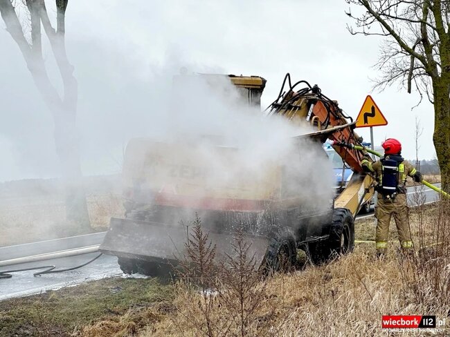 Na miejsce zadysponowano zastęp z Jednostki Ratowniczo-Gaśniczej w Sępólnie Krajeńskim. Na miejscu okazało się, że na drodze wojewódzkiej doszło do pożaru koparki. Na czas działań droga była zablokowana. W zdarzeniu nikomu nic się nie stało. Na miejscu pracował także patrol policji.