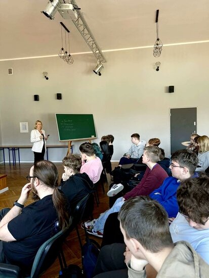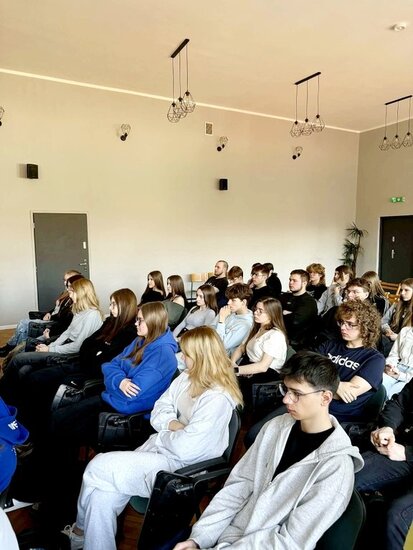 Głównym tematem spotkania była profilaktyka cyberbezpieczeństwa. Wykład zwiększył świadomość młodzieży na temat zagrożeń w cyberprzestrzeni oraz skutecznych metod ochrony danych w systemie bankowym.