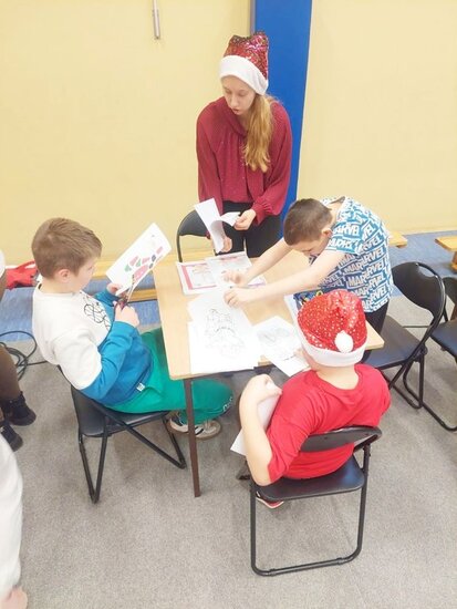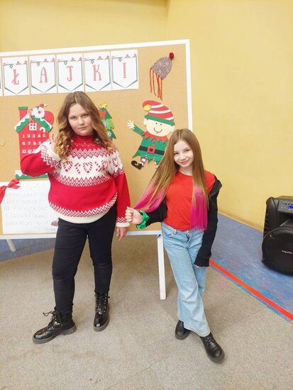 Już od rana w szkole panował wyjątkowy klimat. Szkolny korytarz udekorowany został Mikołajkowymi akcentami, a uczniowie i poubierali świąteczne czapki i sweterki.