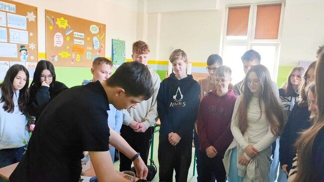 W tym tygodniu odwiedzili nas uczniowie Zespołu Szkół Centrum Kształcenia Rolniczego im. Wincentego Witosa w Samostrzelu, którzy w ciekawy sposób zaprezentowali swoją szkołę oraz przedstawili ofertę edukacyjną na nadchodzący rok szkolny. Ósmoklasiści mieli okazję poznać proponowane kierunki kształcenia, dowiedzieć się więcej o codziennym życiu szkoły oraz zadać pytania dotyczące nauki i praktyk zawodowych.