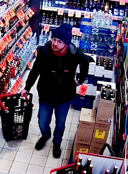 - również alkohol ukradł mężczyzna w wieku 35-45 lat, ubrany w kurtkę koloru ciemnego, ciemne spodnie, średniego wzrostu, łysy. Jego wizerunek zarejestrował sklepowy monitoring (L. dz. 4553/25)