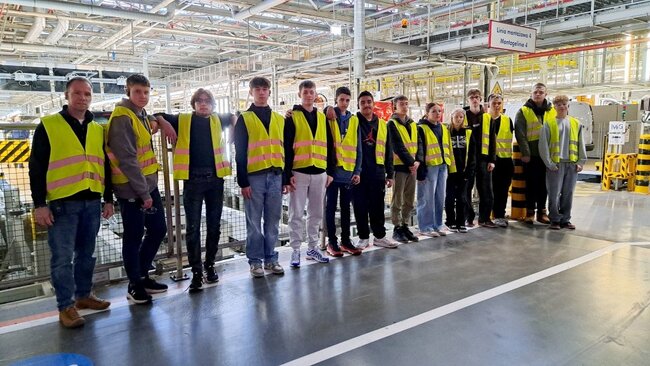 W trakcie wizyty młodzież zapoznała się z pełnym cyklem produkcyjnym – od momentu dostarczenia komponentów na linię montażową, poprzez procesy spawalnicze i lakiernicze, aż po końcowy montaż i kontrolę jakości gotowych pojazdów. Uczniowie mogli obserwować nowoczesne rozwiązania technologiczne, automatyzację procesów oraz współpracę ludzi z robotami przemysłowymi. Szczególne zainteresowanie wzbudziła organizacja produkcji w systemie just in time, minimalizująca zapasy magazynowe i zwiększająca efektywność operacyjną. System ten doskonale sprawdza się także w zarządzaniu działem napraw maszyn i urządzeń.
