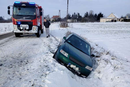 W poniedziałek, 5 stycznia przed południem strażacy interweniowali #w Białowieży, gdzie auto wpadło do rowu.