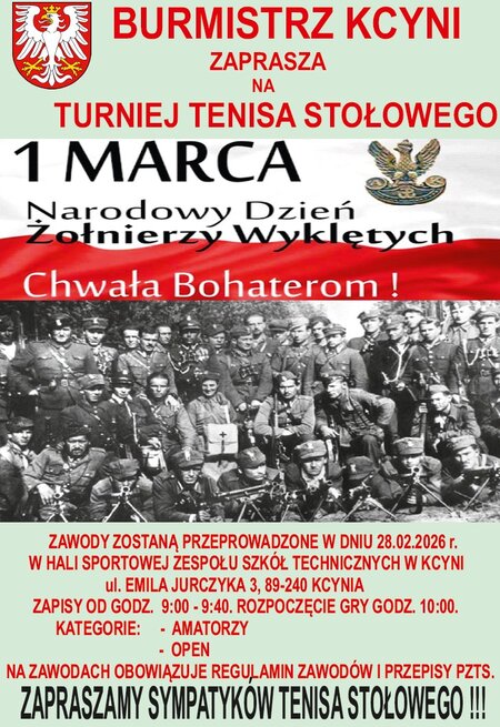 Zapraszamy na Otwarty Turniej Tenisa Stołowego# z okazji Narodowego Dnia Pamięci "Żołnierzy Wyklętych" ustanowionego na dzień 1 Marca.