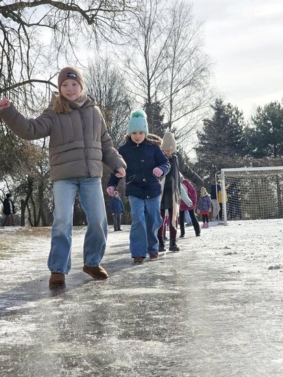 Dziś termometr pokazuje# 4°C, a jeszcze w zeszłym tygodniu podczas przerw w NSP w Olszewce korzystaliśmy z uroków zimy i ślizgawek na boisku szkolnym.