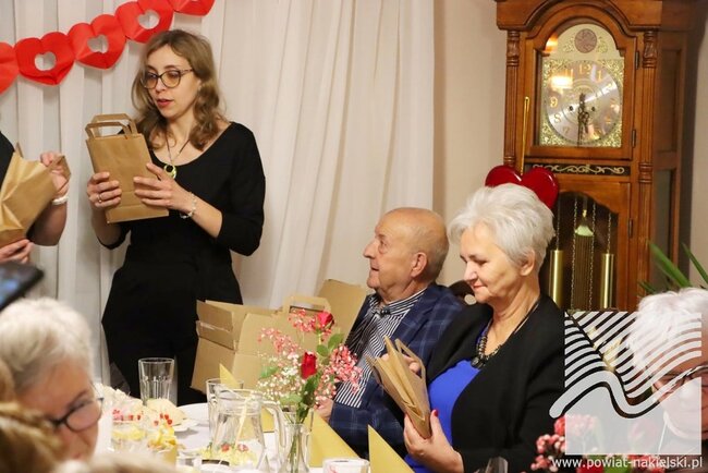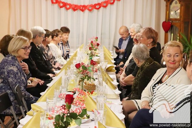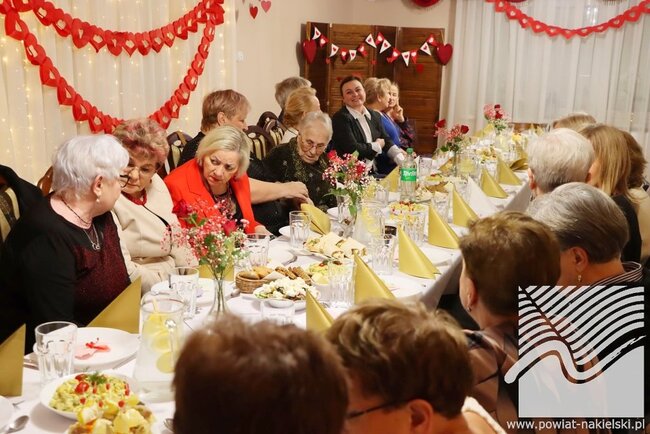 13 lutego 2026 roku odbyło się wyjątkowe# spotkanie integracyjne w klimacie walentynkowym, zorganizowane w ramach projektu „Aktywni seniorzy z powiatu nakielskiego”. Wydarzenie miało charakter otwarty - seniorki mogły zaprosić swoich bliskich, dzięki czemu wspólne świętowanie przebiegało w serdecznej, rodzinnej atmosferze. W spotkaniu uczestniczyło ponad 30 osób.