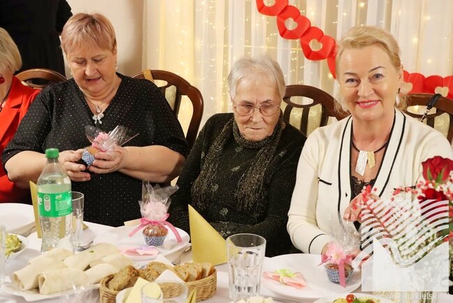 Walentynkowy wystrój sali, pełen czerwonych akcentów i symboli, podkreślał radosny charakter wydarzenia. Była to doskonała okazja do rozmów, integracji oraz podsumowania dotychczasowych działań realizowanych w ramach projektu. Szczególną atrakcją było wręczenie seniorkom zdjęć z ich ostatniej sesji fotograficznej, zorganizowanej w ramach projektu. Fotografie wywołały wiele wzruszeń i uśmiechów, stając się piękną pamiątką wspólnie spędzonych chwil. Na uczestników czekały również słodkie, walentynkowe upominki.