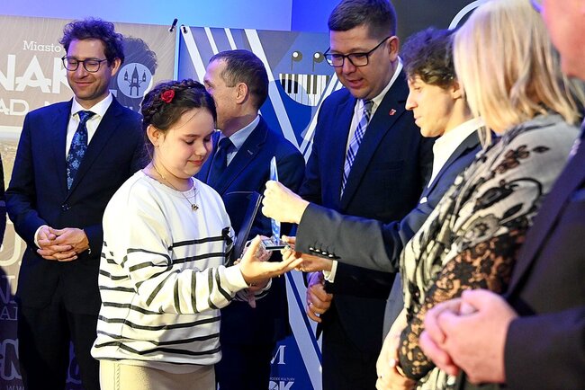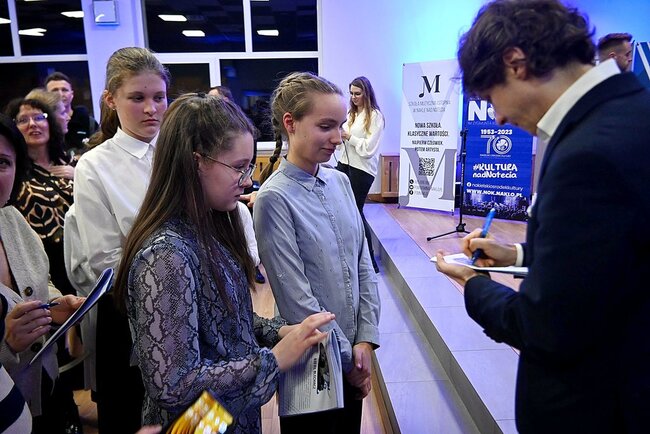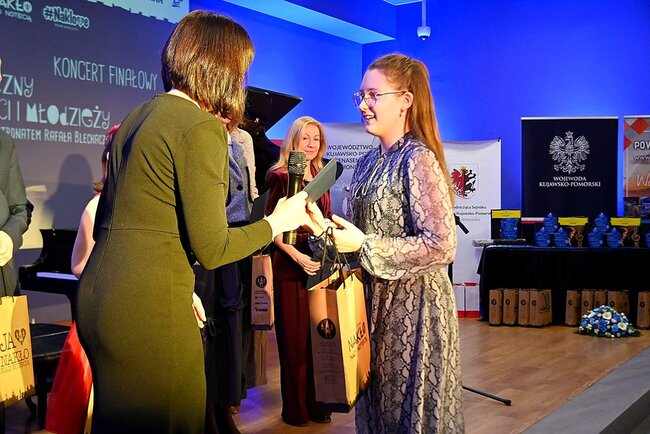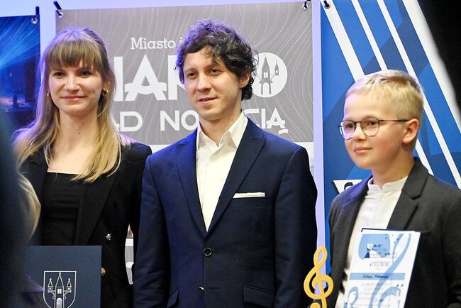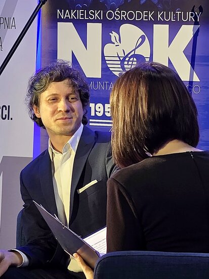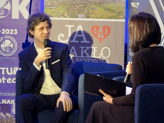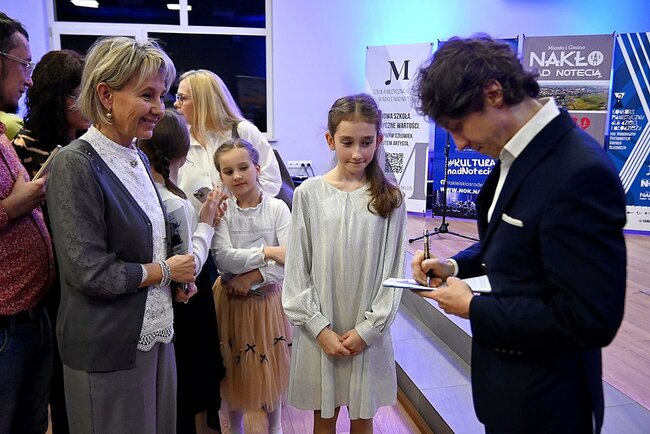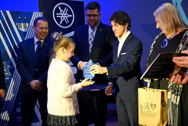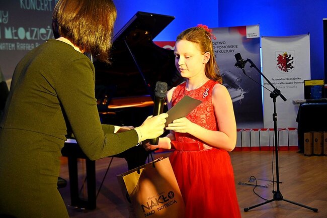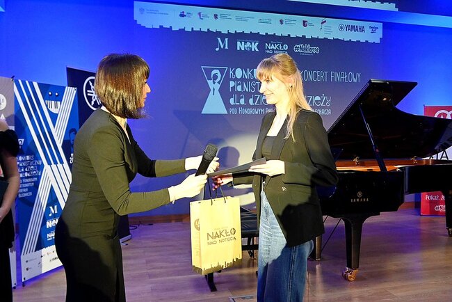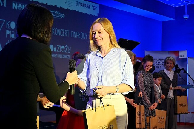 Zwieńczeniem dnia był uroczysty koncert finałowy, który rozpoczął się po godzinie 18:00. To właśnie wtedy publiczność miała okazję ponownie usłyszeć najlepszych uczestników oraz spotkać się z patronem wydarzenia – Rafałem Blechaczem, którego obecność była dla młodych pianistów ogromnym wyróżnieniem i inspiracją. Chwilę wcześniej dyrektor Szkoły Muzycznej I Stopnia w Nakle nad Notecią Beata Nehring przeprowadziła wyjątkową rozmowę z Rafałem Blechaczem, w której nie brakowało wspomnień, wzruszeń oraz przedstawienia najbliższych, muzycznych planów nakielskiego maestra.