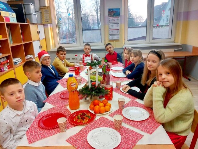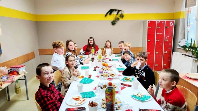 Uczniowie spędzili czas na klasowych wigiliach, pełnych życzliwości, uśmiechów i wspólnego kolędowania. Nie zabrakło również miłej niespodzianki – naszą szkołę odwiedził Gwiazdor, który wywołał wiele radości wśród młodszych i starszych uczniów.