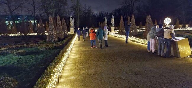 Ostatnim punktem wycieczki była wizyta w Królewskim Ogrodzie Światła w Wilanowie- zimowa wystawa, która rozświetla ogród w Muzeum Pałacu Króla Jana III . Muzyczne iluminacje, niezwykłe foto-strefy i wyjątkowy mapping na fasadzie pałacu. Można podziwiać wyjątkowe połączenie historycznych ogrodów z najnowocześniejszą technologią opartą na świetle i muzyce.