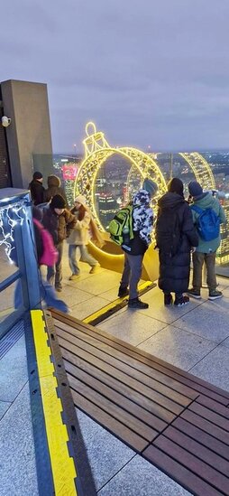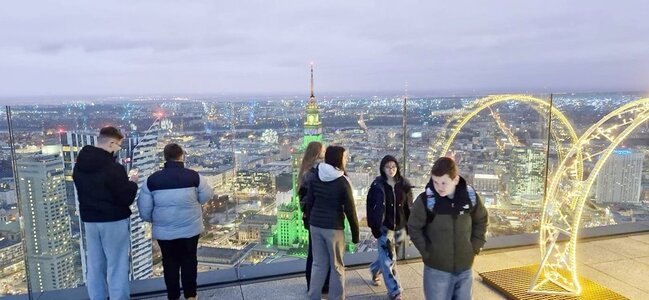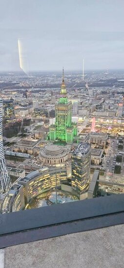 Następnie udaliśmy się na taras widokowy Warso Tower, gdzie z 53 piętra rozciąga się niesamowity widok na oświetloną Warszawę. Budynek ma 310 metrów wysokości i jest również najwyższym budynkiem w Unii Europejskiej.