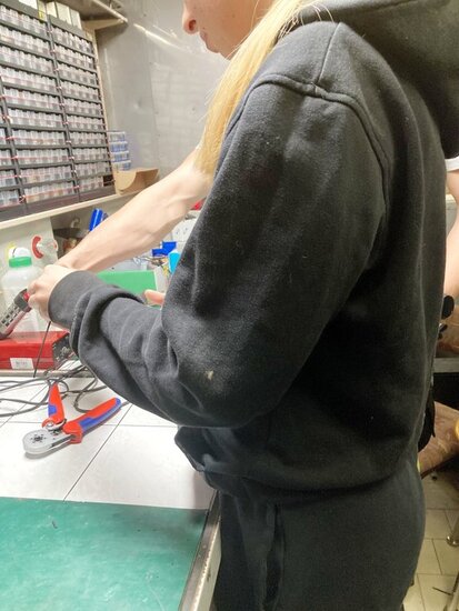 Dużym zainteresowaniem cieszyły się podstawy lutowania. Oficer elektryk przeprowadził zajęcia dla chętnych w dwu grupach. Lutowanie to metoda łączenia metali za pomocą spoiwa, w tym przypadku była to cyna. Bardzo zgrabnie poradziły sobie z zadaniem dziewczyny (Martyna, Iga, Agata) a oficer nie szczędził pochwał.