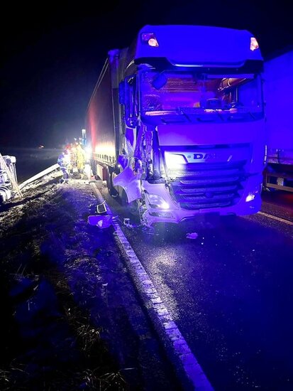 Zderzenie trzech ciężarówek. Jedna osoba ranna
