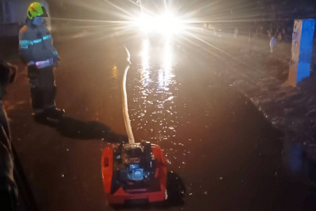 (czytaj więcej)Droga zalana. Strażacy walczą z podtopieniami