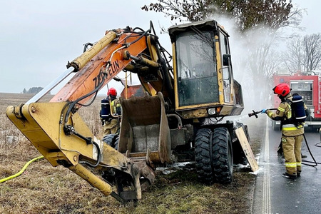 (czytaj więcej)Pożar koparki. Droga była zablokowana