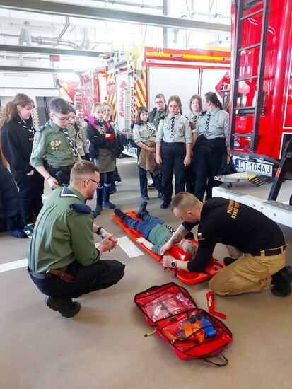 Po powrocie z gry wszyscy uczestnicy wzięli udział w szkoleniu z resuscytacji krążeniowo-oddechowej, które poprowadził Jacek Molęda ze Stowarzyszeniem Ratowników Medycznych Powiatu Nakielskiego. Zajęcia miały na celu rozwijanie praktycznych umiejętności reagowania w sytuacjach zagrożenia życia.