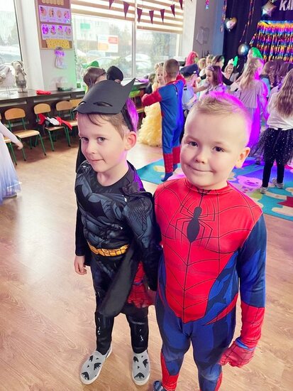 Na parkiecie królowały cztery wyjątkowe grupy – wesołe Misie, skoczne Żabki , radosne Biedronki oraz roztańczone Motylki. Każde dziecko wyglądało bajecznie! Były księżniczki, superbohaterowie, strażacy, wróżki, zwierzątka i wiele innych niezwykłych postaci. Trudno było rozpoznać, kto kryje się pod kolorową maską!