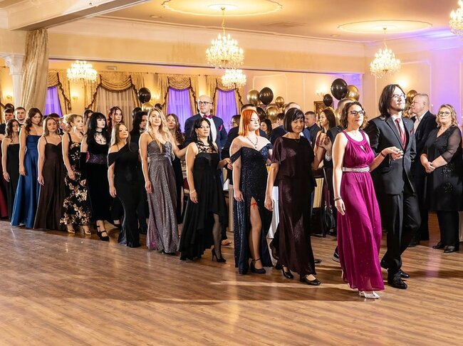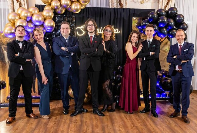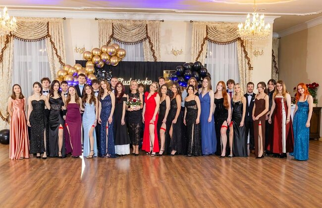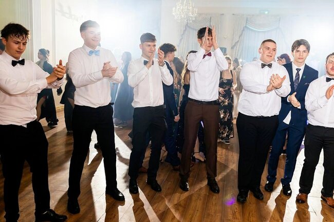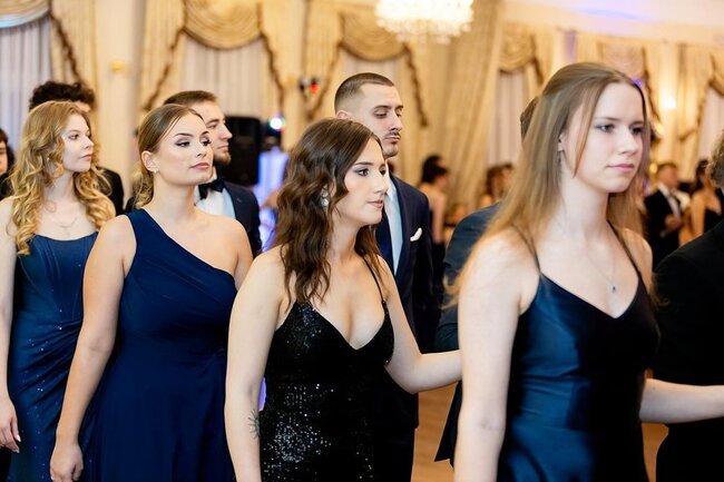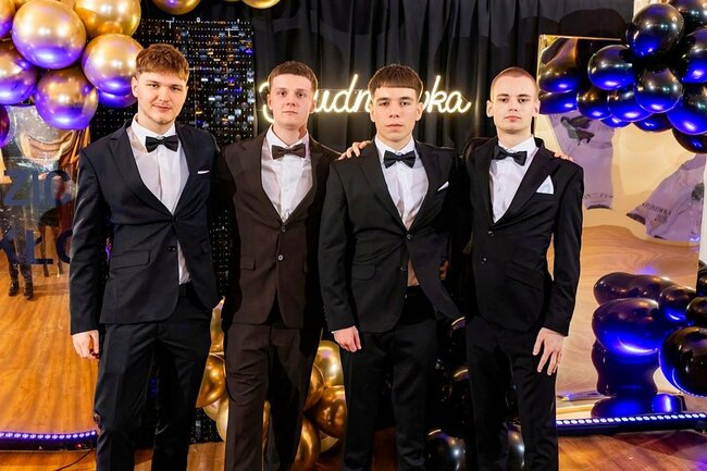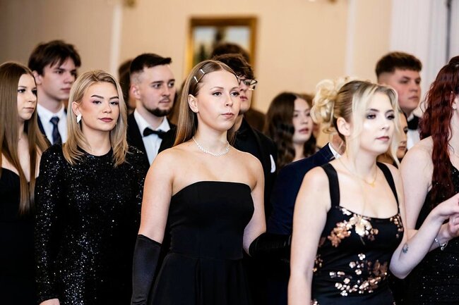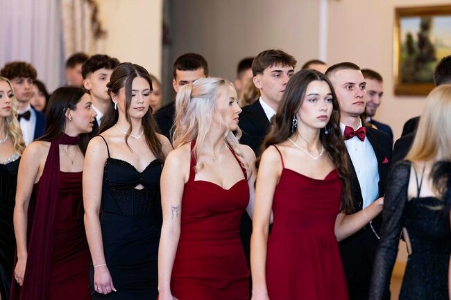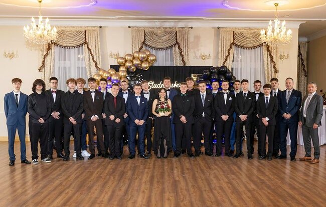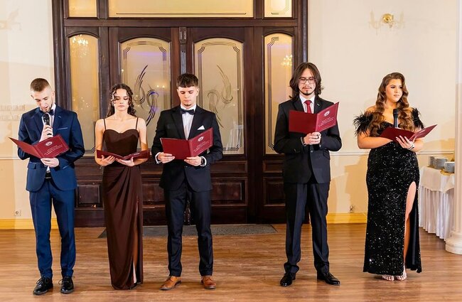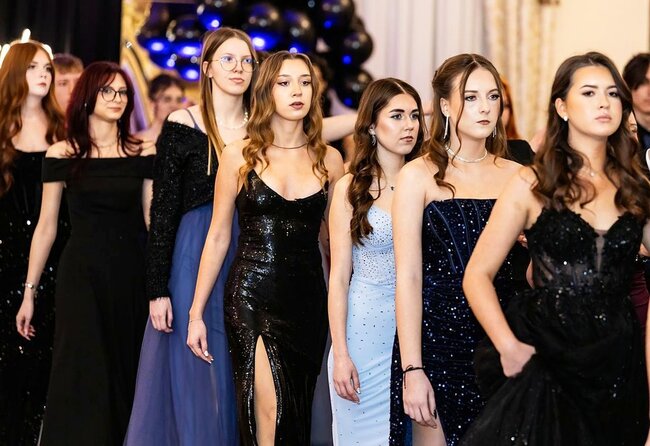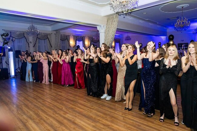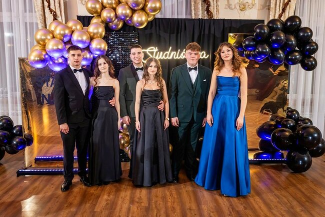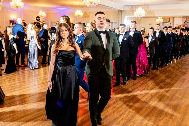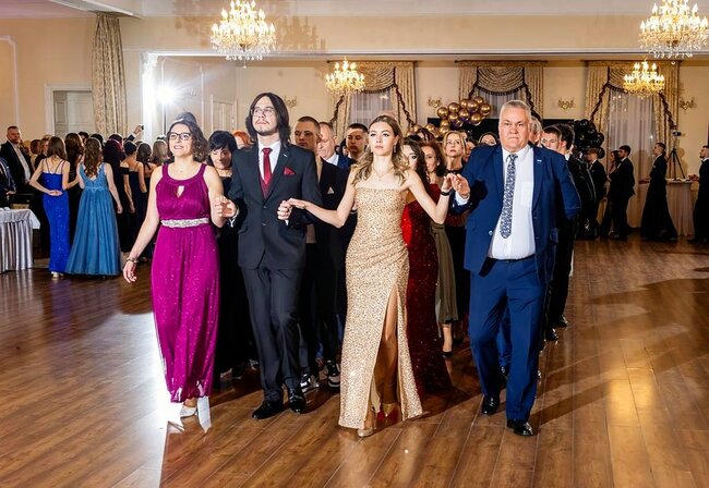 Kulminacyjnym momentem tej części wieczoru był tradycyjny polonez, poprowadzony przez dyrektora szkoły, Pana Dariusza Jana Betschera, który w ten sposób oficjalnie otworzył Bal Studniówkowy 2026. Taniec ten, pełen elegancji i dostojności, wprowadził wszystkich w podniosły nastrój uroczystości.