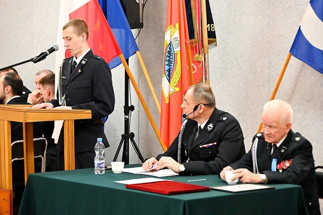 Następnie burmistrz Nakła Sławomir Napierała z przewodniczącym nakielskiej rady miejskiej Pawłem Wiśniewskim uroczyście przekazali jednostce samochód marki Man-Bus. Jeszcze przed rozpoczęciem części roboczej ślubowanie na sztandar złożyło ośmiu nowych strażaków: Michał Szmit, Robert Cebula, Mikołaj Kaczmarek, Julia Żydek, Jakub Mikołajewski, Gracjan Górski, Ludwik Guzek oraz Wiktoria Nowak.