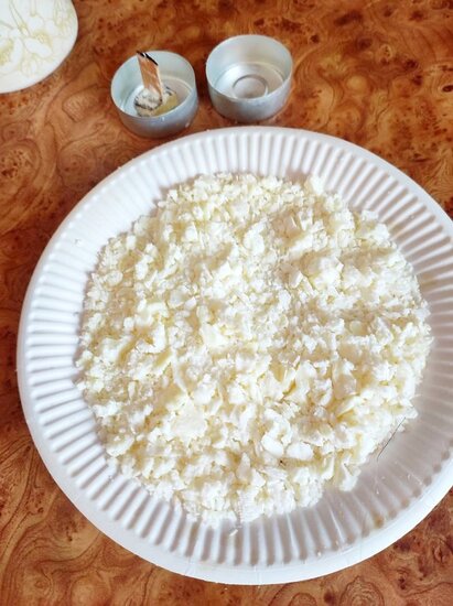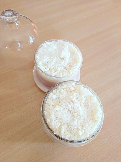 - następnie biała warstwa, imitująca śmietankę i na górę posypka...ze startej białej świeczki.