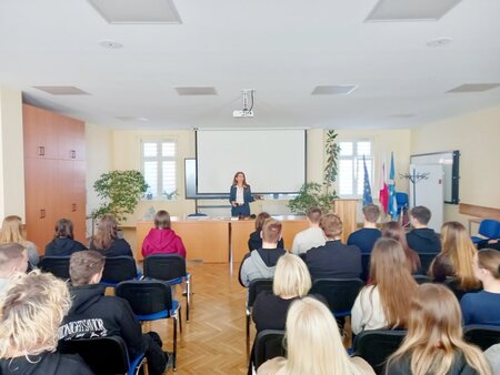 W czwartek, 19 marca klasy# 1TE, 3TŻa, 3BRb i 4TE uczestniczyły w lekcji zorganizowanej przez bydgoskich przedstawicieli wymiaru sprawiedliwości.
