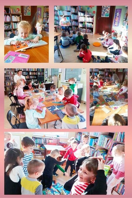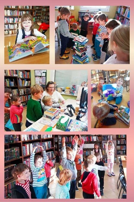 W trakcie spotkania przedszkolaki mogły zobaczyć i poznać zakamarki biblioteki, dowiedzieć się co trzeba zrobić, aby zostać jej czytelnikiem oraz jak należy traktować książki. Zapoznały się z księgozbiorem samodzielnie buszując po bibliotecznych półkach. Z zainteresowaniem wysłuchały krótkiego opowiadania „Prośba książki”. Poznały różnice w budowie oraz procesie powstawania publikacji. Wielką frajdą okazało się budowanie jak najwyższej wieży z książek i zabawy naśladowcze. Maluchy dowiedziały się także na czym polega program „Mała książka, wielki człowiek”. Na zakończenie spotkania samodzielnie stworzyły piękne i kolorowe zakładki do książek. To było bardzo udane i radosne spotkanie.