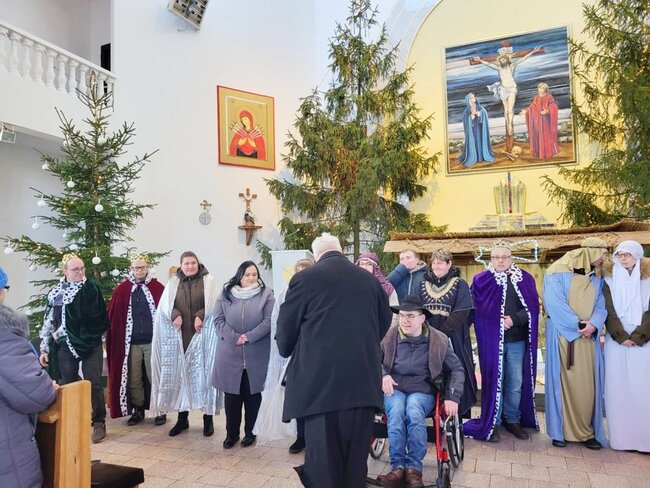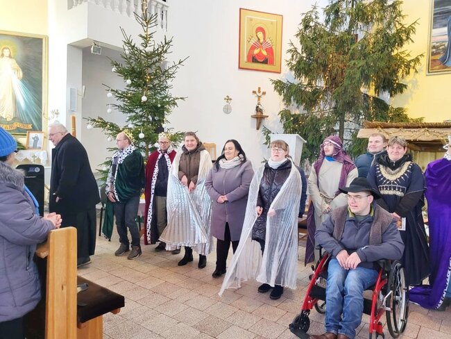 W niedzielę po mszy# św. w Parafii pw. Matki Boskiej Bolesnej w Paterku społeczność Warsztatu przedstawiła jasełkę.