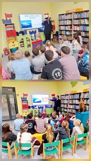 W bibliotece pojawił się też Pan Karol Pożarski, który opowiedział o statkach, pracy na morzu, przedstawił ciekawostki z rejsów.