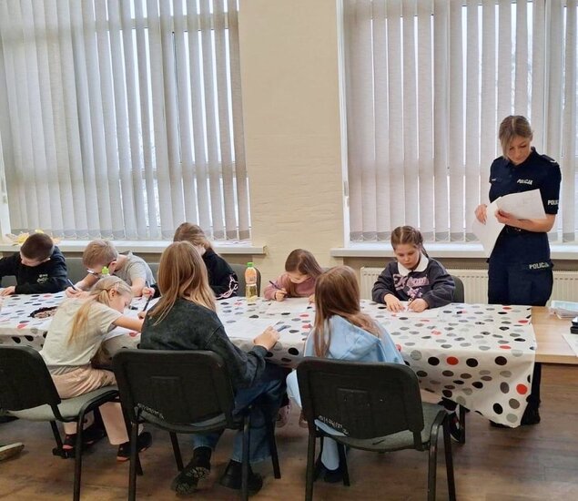 Prowadzące spotkanie przypomniały najmłodszym zasady bezpiecznego przechodzenia przez przejścia dla pieszych, szczególnie teraz, gdy ulice mogą być oblodzone, co wydłuża drogę hamowania pojazdu oraz poruszyły inne tematy związane z bezpieczeństwem w ruchu drogowym.