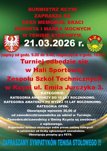 Zapraszamy do udziału #w XXXII Memoriale Braci Roberta i Marka Mocnych w Tenisie Stołowym.