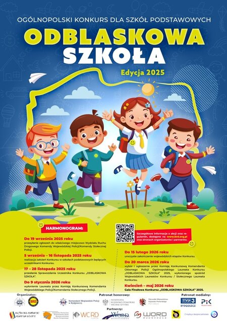 Dzisiaj (12.12.25) w Komendzie Wojewódzkiej Policji w Bydgoszczy zebrała się komisja konkursowa „Odblaskowej Szkoły”. Jest to I edycja konkursu na terenie województwa kujawsko-pomorskiego. Celem przedsięwzięcia jest promowanie działań na rzecz bezpieczeństwa w ruchu drogowym i wyposażenie możliwie największej liczby uczniów w elementy odblaskowe. Organizatorem akcji na etapie wojewódzkim jest Wydział Ruchu Drogowego Komendy Wojewódzkiej Policji w Bydgoszczy, a partnerami są: Kujawsko-Pomorski Urząd Wojewódzki, Urząd Marszałkowski Województwa Kujawsko-Pomorskiego, Kuratorium Oświaty w Bydgoszczy, Kujawsko-Pomorska Wojewódzka Rada Bezpieczeństwa Ruchu Drogowego, Wojewódzkie Ośrodki Ruchu Drogowego w Bydgoszczy, Toruniu i Włocławku oraz Zarząd Okręgowy Polskiego Związku Motorowego w Bydgoszczy.