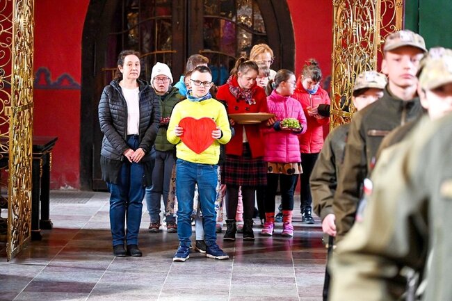 W katedrze bydgoskiej modliły się dzieci z rodzicami, wychowawcy, opiekunowie, uczniowie szkoły mundurowej. Przy ołtarzu stanęli także o. dr Marek Walkusz CSSp ze Zgromadzenia Ducha Świętego, a także ks. Sławomir Homoncik MIC, kustosz Sanktuarium Matki Bożej Licheńskiej, który zaprosił wszystkich do Lichenia. – Stajemy tutaj – przed Matką Bożą Pięknej Miłości – z osobami, które noszą w sobie dodatkowy gen miłości. Także przed tobą, księże biskupie, który obdarzasz nas miłością, wsparciem i radością wspólnego przebywania ze sobą w tej wspólnocie. Bóg zapłać za to wszystko, co otrzymujemy od Kościoła dla osób z niepełnosprawnościami. Wydaje się, że słabszymi, a jak bardzo nas ubogacającymi – mówił Piotr Częstochowski, twórca „Dziecięcego Graffiti”.